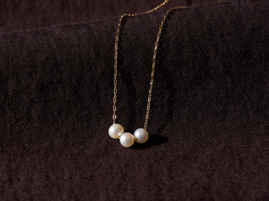 自由に動く3粒の光「K10YG パール ネックレス」