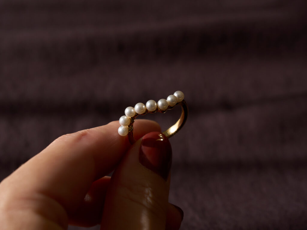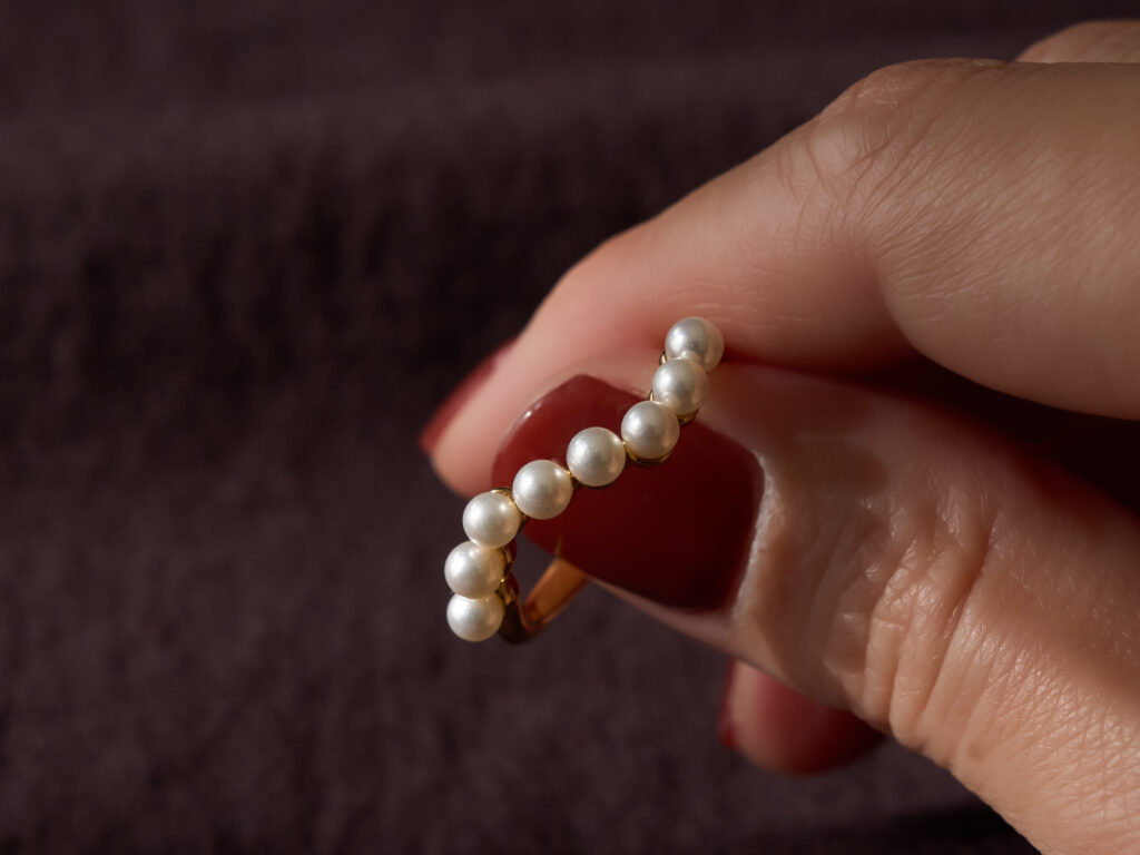 手元に添えるハンサムなリズム「ウェーブ パール リング」