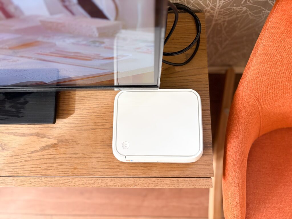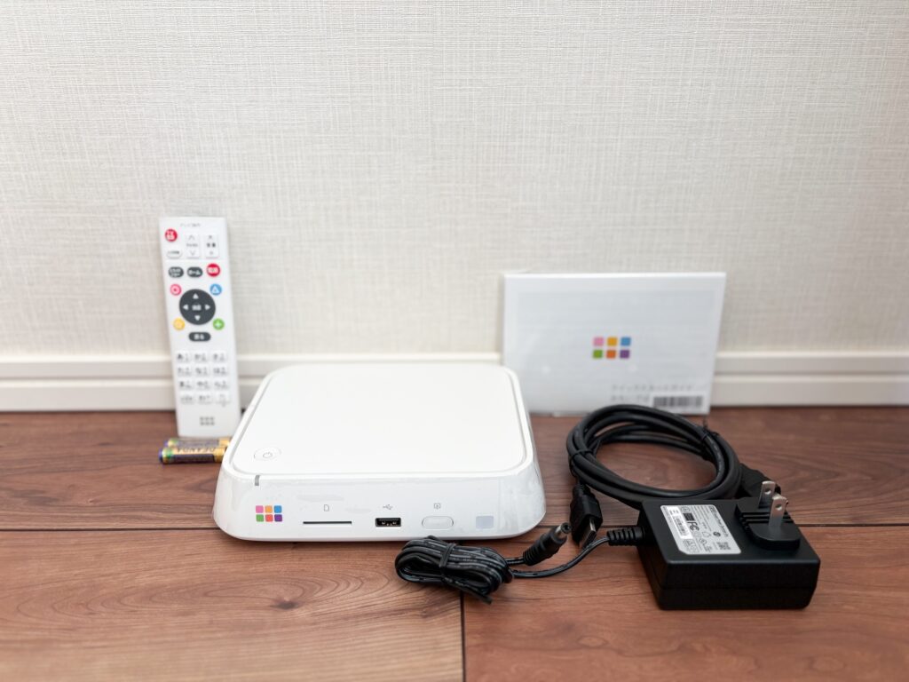 本体は想像していたよりもコンパクトで、テレビボードの上に置いても目立たないサイズ感でした。