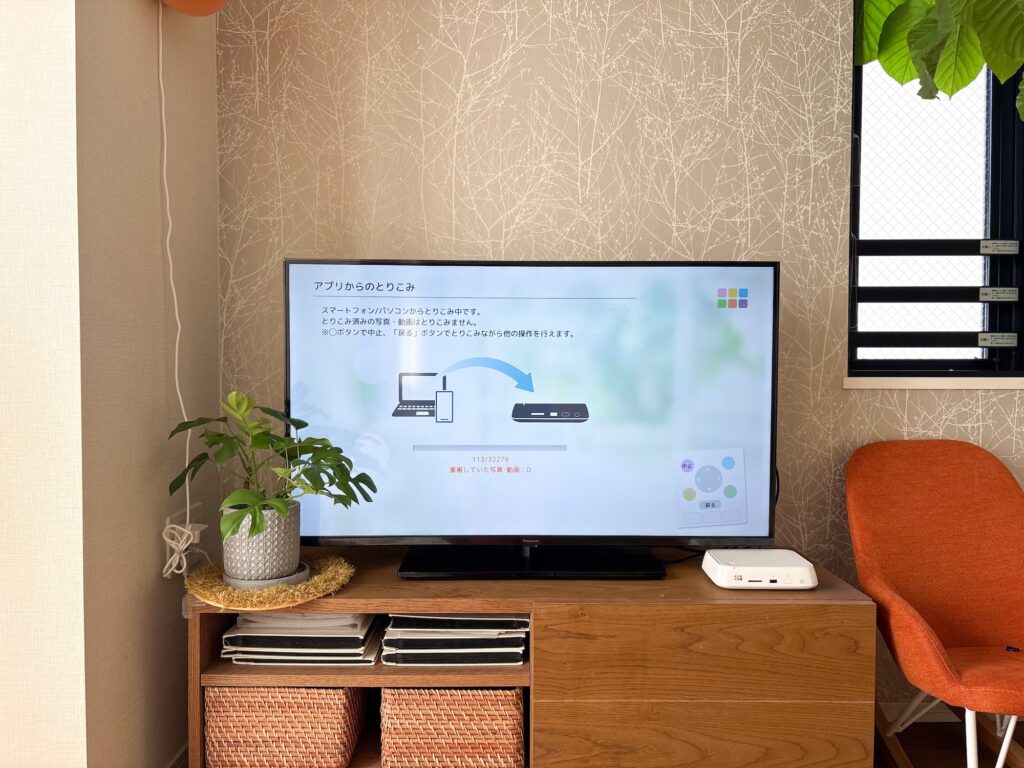 小さな子どもは自分が写っている写真や動画を見るのが大好き。私もよく子どもたちから「この前〇〇に行ったときの写真見せて!」「運動会の動画が見たい!」などのリクエストを受けます。そんなときに「おもいでばこ」があれば、テレビを見る感覚で映像を楽しめますよ。