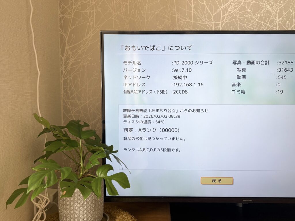 とても便利な「おもいでばこ」ですが、機械なので一定寿命もあります。万が一のために別売りのバックアップ用ハードディスクを用意しておくと大切な写真や動画を守ることができて安心です。