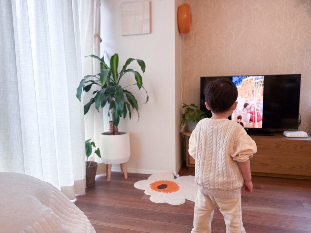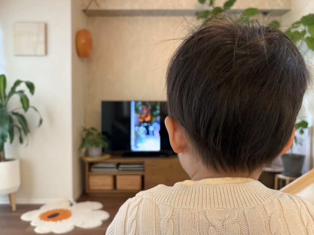 「テレビで写真や動画が見れるようになったんだよ。」と伝えて画面を見せると「すごい!」と大喜びしていました。